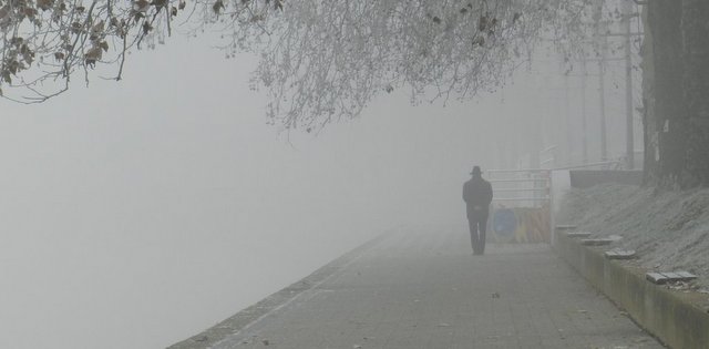 Slavonski Brod/ Ovaj Brođanin na slici iskoristio je prvo jutro u 2013-toj za jutarnju šetnju obalom Save. Što će nam ova godina donijeti …kao da se pita. Na maglu je već navikao i bilo bi vrijeme da se ona polako digne. Hoće li to biti uskoro …vidjet ćemo.…
