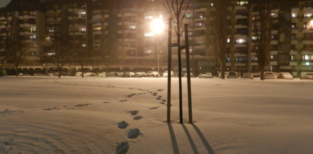 Osijek/ U večerašnjoj šetnji osječkom promenadom napravih ovu fotku. Snijega ima posvuda u Hrvatskoj, napravio je dosta kaosa na putevima i cestama. Izvan tih puteva i…