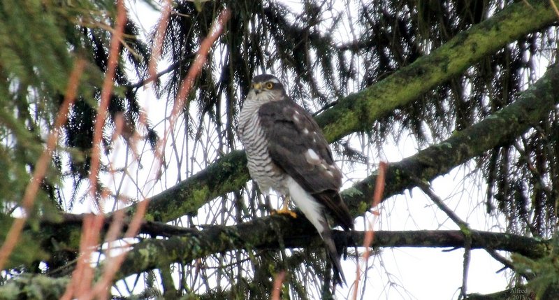 Jedan soko, zaposjeo je visoko na smreki u susjedovome vrtu – promatračnicu. Od tuda započinje svoj lov na vrapce. Vidjeh ga neki dan, u lovu i na jednoga neopreznoga djetlića, koji je srećom pobjegao u gustu krošnju i tako ostao živ.