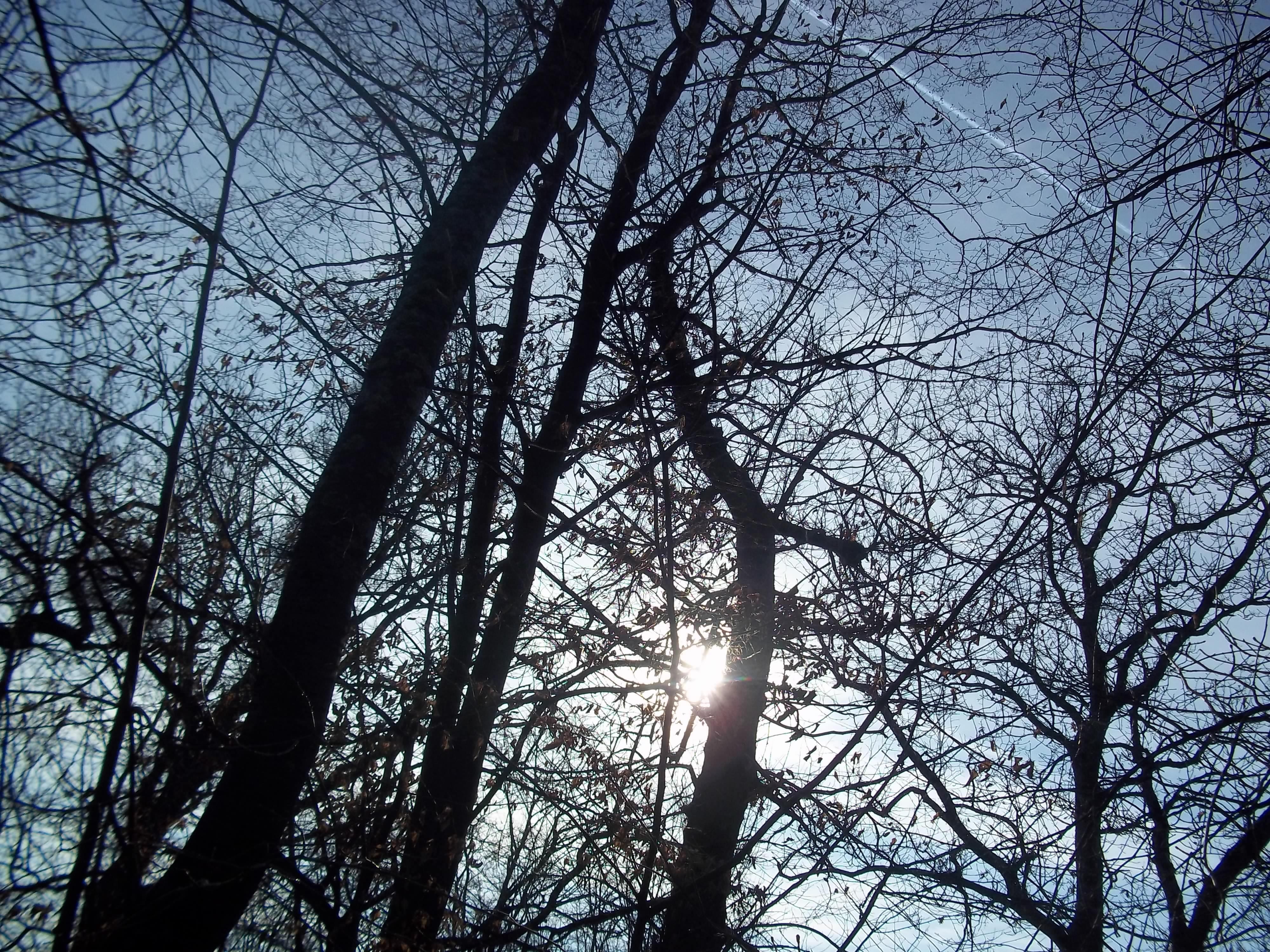 Igra igru skrivača među još uvijek usnulim granama drveća, virka između još uvijek neodjevenih stabala, skriva se u širokim, još uvijek neprobuđenim  deblima…