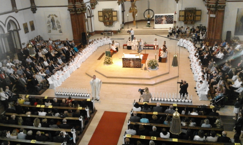 Berlin/ U subotu, 21. svibnja 2016. godine, 60 dječaka i djevojčica po prvi su put primili svetu hostiju, Tijelo Isusovo.