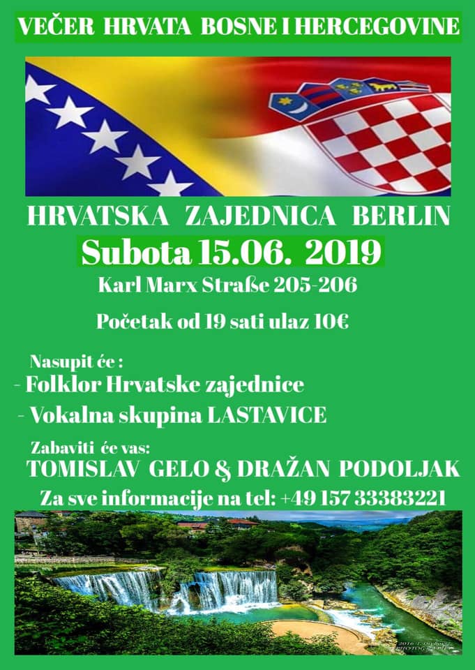 Berlin/ Hrvatska zajednica Berlin poziva na Večer Hrvata Bosne i Hercegovine u subotu, 15. lipnja od 19 sati.