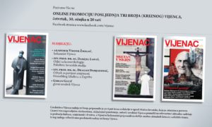 “Vijenac” – književni list za umjetnost, kulturu i znanost organizira i poziva na online promociju posljednja tri broja (“kriznog”) Vijenca u četvrtak, 30. travnja u 20 sati na