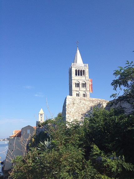 Rab, 30. srpnja 2013./ Nalazim se na doista posebnom mjestu. Ispred mene pučina plava, nebo plavo pa čak i kopno u daljini u nijansi plave. Sve je plavo. Rapsodija u plavom. S plavim nebom skladno se spajaju zvonici njih četiri poput jarbola nekog jedrenjaka.
