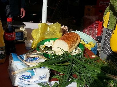 Puk vuče silne mrežice mandarina i jabuka po povoljnoj cijeni, a između šarenih štandova s voćem , ustoličio se jedan koji prodaje gume za kamione, a prekoputa njih nekoliko izlagača sa antikvitetima. Svi u kohabitaciji bez tenzija. Teško reći je li izlagač ili izloženo u kategoriji antikviteta, otprilike se natječu.