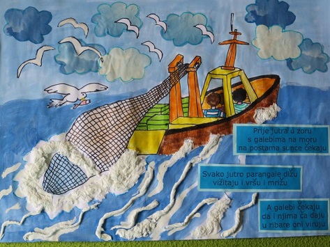 Za naš i vaš užitak ovdje donosimo radove Josipe Zorić i Marina Kuzmića, učenika drugog razreda. Oni su slikali na temu pjesama Najdraži moj škoju i Ribari.