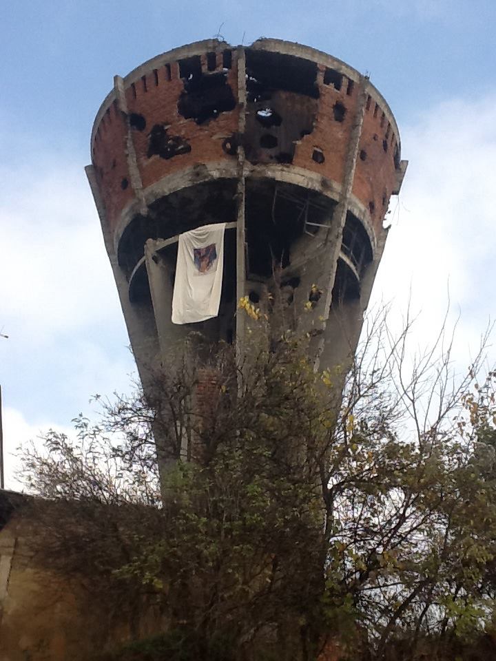 Am Wasserturm, dem international bekannten Wahrzeichen von Vukovar ist erstaunlicher Weise nichts los. Ein paar Leute lassen sich fotografieren. Hier hätte ich mehr erwartet.