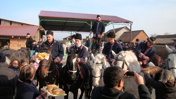 Sa stadiona polaze točno u podne a idu kroz cijelo selo čestitati imendan svim Ivanima i Ivanama. Oni domaćine daruju topotom razigranih lipicanaca a domaćini njih rakijom i kuhanim vinom, kobasicom, šunkom i kolačima.
