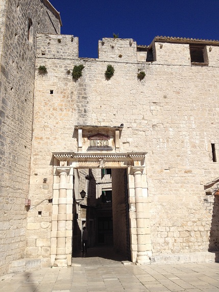 Ulaskom kroz stara renesansna vrata očuvana iz dalekog 16. stoljeća zakoračih sa obale – trogirske rive u drugi svijet – svijet koji čine uske uličice kalete isprepletene poput kakvog malog labirinta, bijele kamene vile odnosno palače sa prozorima poput čipke, veličanstvena crkva na središnjem gradskom trgu, obrambene tvrđave kao nijemi stražari povijesti ili još bolje svjedoci minulih dana …