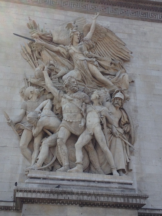Na ovom spomeniku u liku žene prikazana je Francuska Republika koja drži mač. Legenda kaže kako se mač prelomio kada je počela Bitka kod Verduna 1916.godine. Na spomeniku su prikazani štitovi, te imena francuskih revolucionarnih ratova i Napoleonovih bitaka, a u unutrašnjosti su uklesana imena 500-tinjak francuskih generala. Naravno, Napoleonove bitke poslije bjega sa Elbe nisu navedene pa ni ona najpoznatija Waterloo. Slavoluk se gradio punih 30 godina, a završen je 1836.godine.