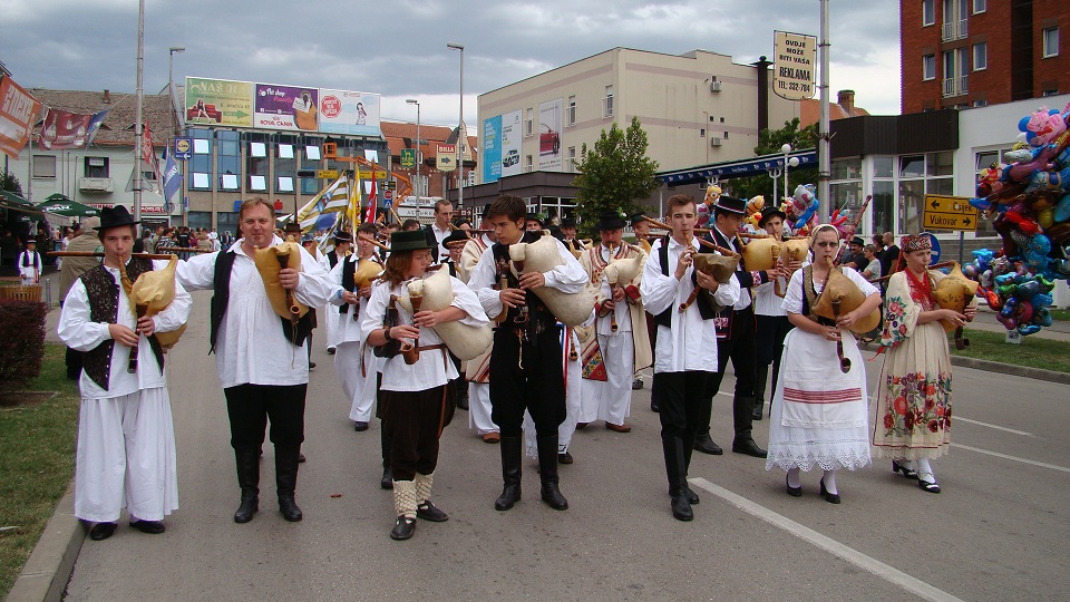 E vratimo se mimohodu u nedjelju 20. rujna. Nebo se nekako smrknulo, no Bogu hvala, izdržalo je i sve je prošlo u najboljem redu. Nakon već pobrojanih mažoretkinja i povjesnih udruga nailazi poveća skupina svirača na tradicijskim glazbalima, koju predvodi udruga Zagrebački gajdaši pod vodstvom Stjepana Večkovića i tu zamijetim dvojicu gajdaša iz Vojvodine, točnije rečeno iz HKPD „Matija Gubec“ iz Tavankuta, Augustina Žigmanova i Zdenka Ivankovića. Blistaju od sreće, prvi puta su na Vinkovačkim jesenima, no njihov je KUD često bio u Vinkovcima pa i sa dječjom skupinom. Žigmanov kaže da svira već drugu godinu i drago mu je da ovdje može predstavljati društvo, dok Zdenko priznaje da je gajda svladao tek ovog ljeta, ali ide, bit će još nastupa. Zadovoljni su ozračjem u Vinkovcima, velika je to i mnogoljudna manifestacija i bit će im drago ako ih ponovno pozovu.