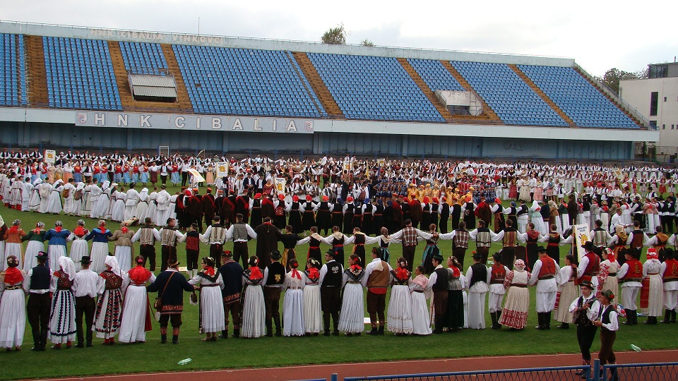 I onda, šlag na kraju, najveće šokačko kolo na stadionu HNK Cibalie sa više od 4 tisuće sudionika u živopisnom ruhu ispod golemog srijemskog neba. Veličajno!