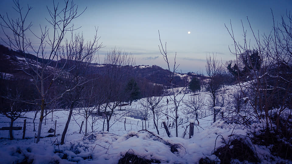 Nakon što smo se dobro zgrijali, pozdravljamo se i spuštamo prema autima. Pada mrak, a Zrinska gora se bijeli pod snijegom. Obasjava je veliki puni mjesec.