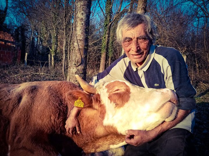 Sunce je na zalasku, počinje “golden hour” koji fotografi obožavaju, a moja kamera je crkla. Stoga za kraj dana uzimam mobitel i bilježim trenutak kada Milan miluje svoga bika. Bik s osmijehom se namješta i upija svako “čohanje”.