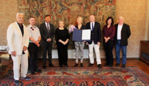 Zagreb, 5. srpnja 2021. – U palači Hrvatske akademije znanosti i umjetnosti u ponedjeljak 5. srpnja održana je svečanost dodjele povelje dopisne članice HAZU prof. dr. sc. Zrinki Stahuljak, istaknutoj romanistici, direktorici Centra za studije srednjeg vijeka i renesanse (CMRS) Kalifornijskog sveučilišta u Los Angelesu (UCLA).