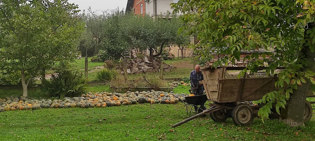 Poslije doručka ne idemo na težak rad, ali je pred nama težak dan. Prvo pobrati par stabala jabuka. Onih prastarih, kvrgavih, “k’o šugavih”, al’ mirisnih, sočnih. Posao je završen za kratko vrijeme, a mi se selimo do Marijana, jednog od jedanaestero sestara i braće u obitelji Marčec. Točno sam napisao i točno ste procitali. Jedanaest, slovom i brojem. Današnji strahovi o tome kako će se zemaljska kugla zaustaviti, nastavimo li se tako dalje množiti ili sačuvaj Bože, primimo li koju stotinu jadnika s istoka i juga, su paranoidni i bez osnove. Na škrtoj zemlji i na maloj parceli, odrasli su nekada milijuni i milijuni ljudi širom Evrope i svijeta. Nije bilo bogato, al’ je nekak’ bilo.