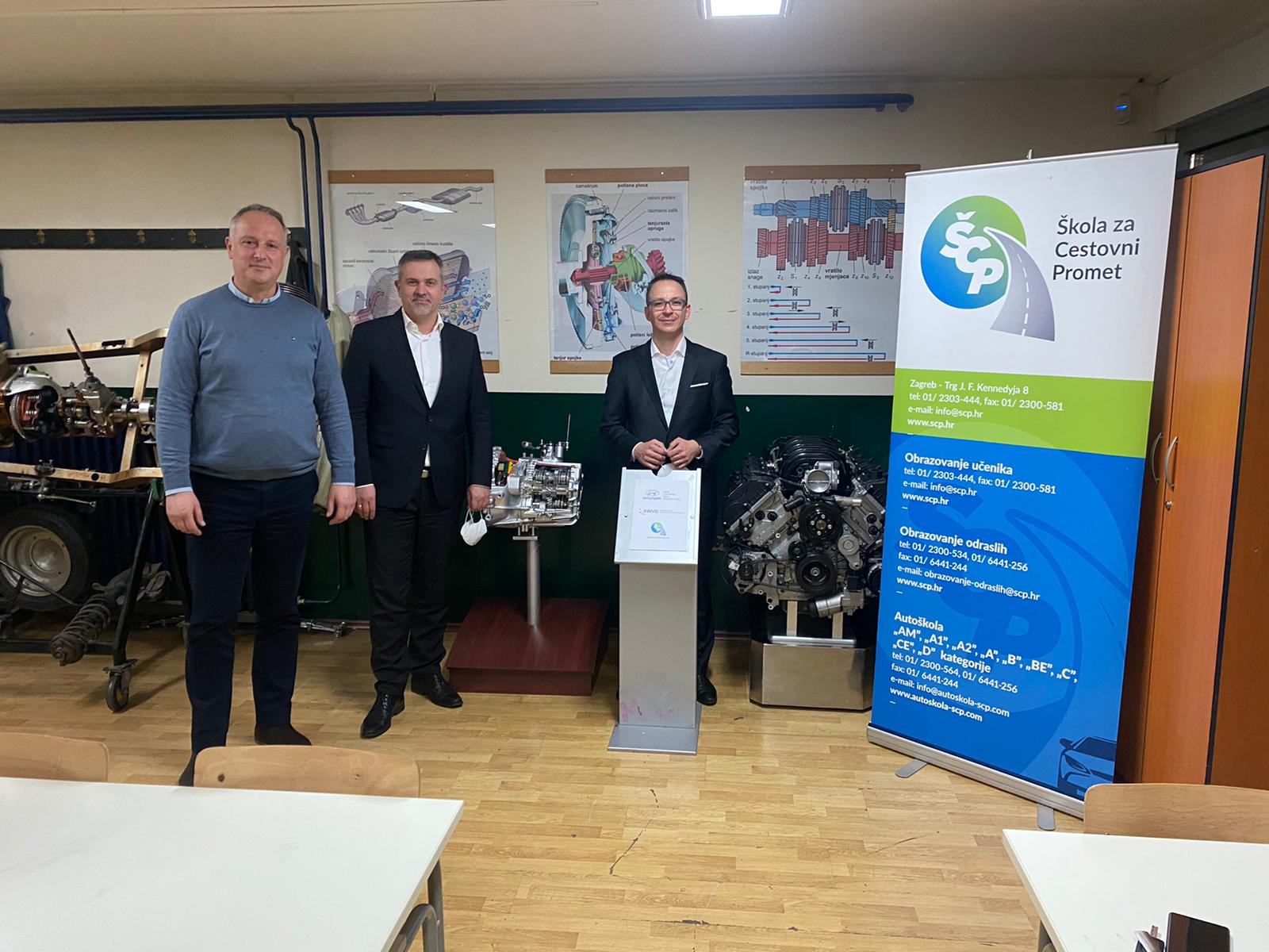 Također, dan ranije, u četvrtak 02.12.2021. godine, Hyundai Motor Europe Technical Center iz Njemačke je na čelu s Franjom Akmadžom, a uz podršku Hrvatskog svjetskog kongresa u Njemačkoj i Hrvatskog gospodarskog saveza iz Njemačke, zagrebačkoj Školi za cestovni promet darovao getribu (mjenjačku kutiju) za školske potrebe.