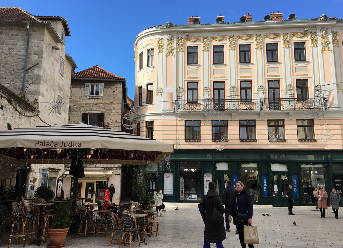 Laganom šetnjom splitskim kaletama evo me na još jednom zgodnom, prigodno ukrašenom mjestu okupljanja – Narodnom trgu – popularnoj Pjaci.