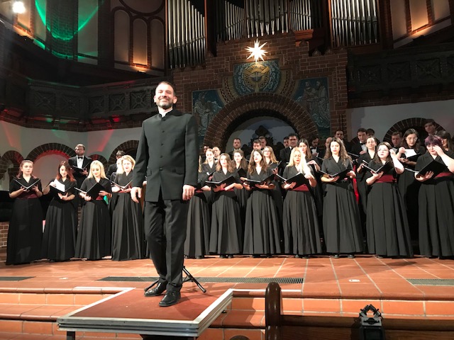 Akademski zbor Ivan Goran Kovačić je, uz dirigenta Luku Vukšića i pijanista Ivana Ščepanovića, izveo “Zdrava Devica” (Mato Lešćan), “Svrši stopi moje” (Krsto Odak) i “Svet” iz Hrvatske mise a potom su zajedno s njemačkim zborom izveli i skladbu Edwarda Griega, naslova “Ave Maris Stella” uz dirigenta njemačkog kora, Stefana Schucka.