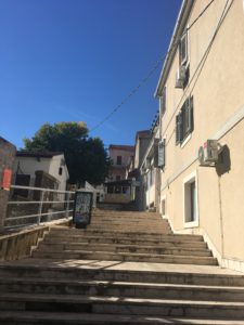 Spuštam se niz kamene stepenice dok zimsko podnevno sunce baca sjene na ulice i trgove grada, a nebo je intezivno plavo i sve druge boje su čiste jer bura, taj moćni vjetar, koju u Dalmaciji zovu odnosno tepaju joj kao „čistoj ženi“ je doista učinila zrak čistim i britkim, a boje intezivnim.