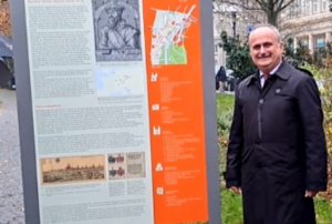 Razdragana dama je dr. Astrid Stein, koja se u ime udruge zahvalila veleposlaniku Bakoti na inicijativi za postavljanje informativne ploče uručivši mu monografiju „Die Magdeburger Ulrichskirche – Geschichte. Gegenwart. Zukunft.” (Ulrichova crkva u Magdeburgu – povijest, sadašnjost, budućnost).