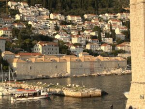 Sa zidina Dubrovnika promatram neobičan prizor kao da sam bar 400 godina preskočila unatrag. U svjetlu zalazećeg sunca uplovljava jedrenjak. Iza njega su obojani u blagu toplu sunčanu svjetlost bijeli zidovi i crveni krovovi kompleksa dubrovačkog Lazareta. Da je ovo 17. stoljeće jedrenjak ne bi produžio plovidbu prema luci, morao bi se prije toga usidriti. Naravno jedrenjak kojemu se divim je turistički brod koji uz jedra ima i moderne motore, ali koji se tako skladno uklopio u vizuru srednjovjekovnih zidina.