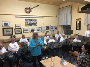 Dakle, zahvaljujući Nadi, stižem na drugi dio glazbene večeri kod Wellebita. Prostorija potpuno ispunjena. Svira 12 članova Wellebita. Nekih dragih lica, nažalost, i nema više uz tamburice, a i jedno novo je tu. Znak kad svirka počinje i završava, rukom daje šef Horst Budde sa svojim basom iz 1902. godine, kojemu je u Wellebitu svojevremeno svirao i otac i brat. U drugom dijelu prostorije skupilo se mješovito ali raspjevano i veselo njemačko-hrvatsko društvo, brojna mi poznata lica, Eva, Günter, Mirjana, Lidija…