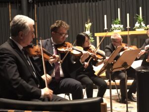 U predivnoj atmosferi, izvanrednoj akustici, posebnom okruženju vitraja ovalnog crkvenog prostora, glazba je budila iznimne osjećaje. Izvodili su djela Felixa Mendelsona, Gustava Mahlera, Johna Williamsa, Bruna Bjelinskog, Samuela Berbera i Lea Weinera. I bili nagrađeni toplim pljeskom.