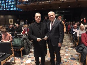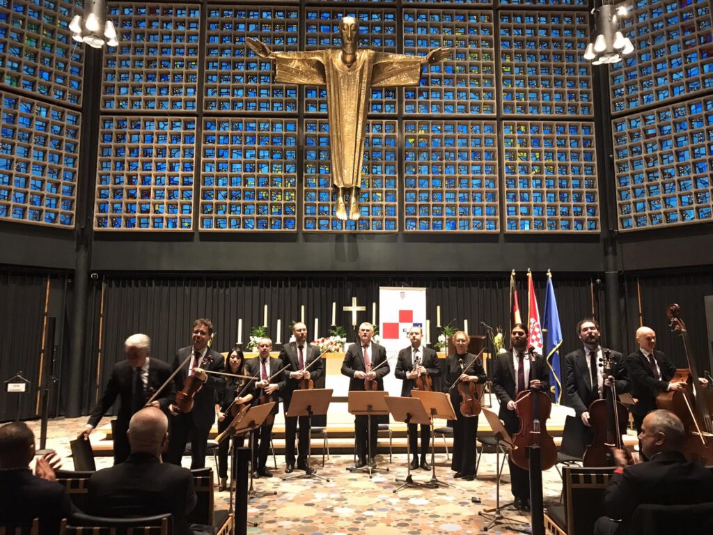 Potom je publika u kojoj su bili i Nijemci i Hrvati, diplomatski predstavnici, članovi hrvatskih udruženja, predstavnici Grada, Crkve, a među njima i diplomatski doajen, papinski nuncij Nikola Eterović, uživala u koncertu Zagrebačkih solista.