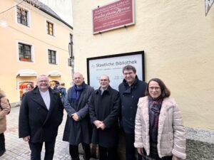 Svečanom otkrivanju spomen ploče na zgradi Državne knjižnice prisustvovali su i prof. dr. Udo Hebel, rektor Sveučilišta u Regensburgu i prof. dr. Mario Grčević, obnašatelj dužnosti dekana na Fakultetu hrvatskih studija u Zagrebu.