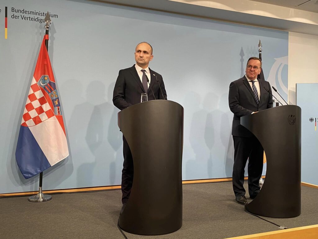 Njemački ministar obrane Boris Pistorius pozdravio je hrvatskog ministra na prvom službenom susretu. Rekao je kako je Hrvatska dugogodišnji pouzdani partner Njemačke u NATO-u i EU. “Danas želimo tu suradnju proširiti i ovim zajedničkim potpisom izjave. Pri tome se radi o potpori Ukrajini. Tamo ne možemo gubiti vrijeme. Zahvalan sam za potporu koju Hrvatska daje Ukrajini. Hrvatska se izjasnila spremnom 30 tenkova i 30 transportnih vozila ustupiti Ukrajini. Hrvatska ulaže istovremeno u opremanje svog vojnog naoružanja i radujem se da žele imati naš Leopard 2 A8 A i pobrinut ćemo se da proizvodni kapaciteti budu spremni za to i takođe ćemo se pobrinuti da se u NATO-u radi dobre koordinacije koriste isti standardi, rekao je između ostalog njemački ministar Pistorius.
