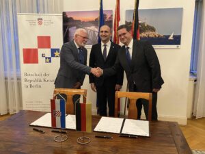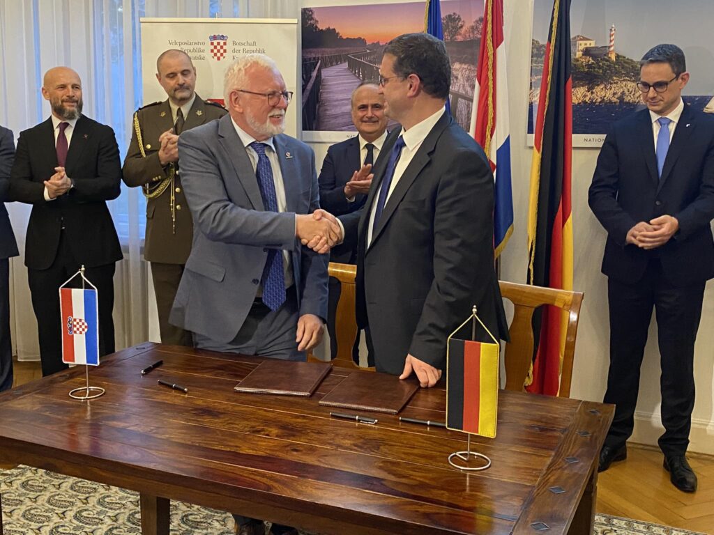 Nakon završenih razgovora, dvojica ministara su pred predstavnicima medija stavili svoje potpise na pripremeljene dokumente a potom su hrvatskim i njemačkim novinarima ministri Pistorius i Anušić objavili i objasnili o čemu su razgovarali i što su netom potpisali.