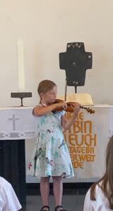 Tako je i profesorica violine Monika Johannsen organizirala koncert svojih polaznika koji uče svirati violinu. Na klaviru ih je pratila Viktoria Ibsh.