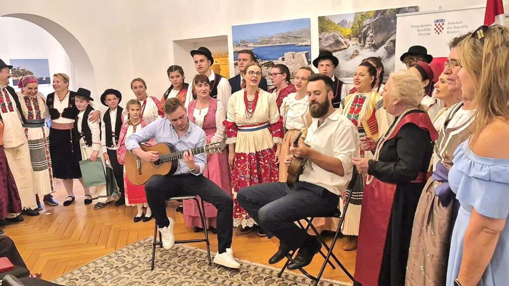 Berlin/ Kulturna večer naslova “To je moja zemlja – hrvatska prošlost-baština budućnosti” upriličena u Veleposlanstvu Republike Hrvatske u Berlinu povodom 1100. obljetnice Hrvatskoga Kraljevstva, završila je prelijepom glazbeno -scenskom slikom u kojoj su zajedno stajali svi sudionici u programu i radosno pjevali: “Moja domovina, moja domovina, ima snagu zlatnog žita, ima oči boje mora, moja zemlja Hrvatska…”
