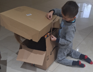 Mama se s mukom uvukla u tu kutiju da udovolji njegovoj igri.