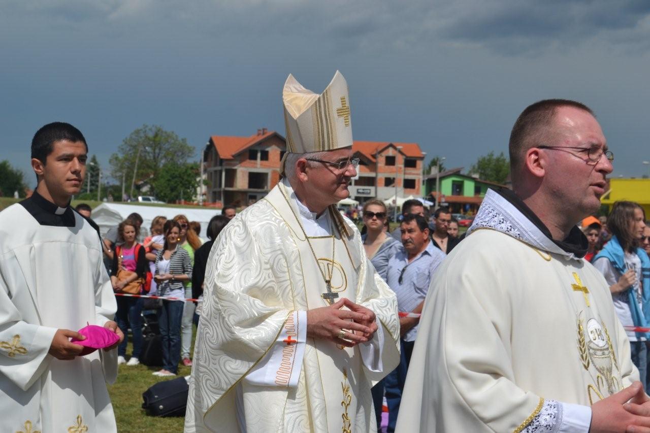U 11 sati su svećenici te Dubrovački biskup Mate Uzinić prilazili pozornici koja je bila postavljena na igralištu. Misu je predvodio biskup Mate Uzinić, budući domaćin SHKM-a 2014.,u Dubrovniku. Kad je palo nekoliko kapi kiše i sam je prišao nenatkrivenom dijelu pozornice da bi bio bliže svome stadu i usporedio nas je s trsom koji se nakalemi na lozu, tj. na Isusa Krista da bi nam sigurnost i sreća života bili zagarantirani.