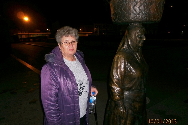 Stižemo u Zagreb. Noć je. Ljepo je osvijetljen moj glavni grad. I čist je. Pogotovo Dolac. Tržnica je oprana i čeka sutra opet svoje kumice, samo ne znam hoće li nositi košare na glavi, kao ova, na slici sa mnom.