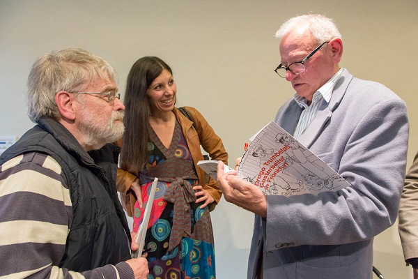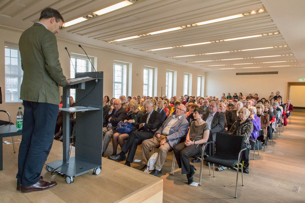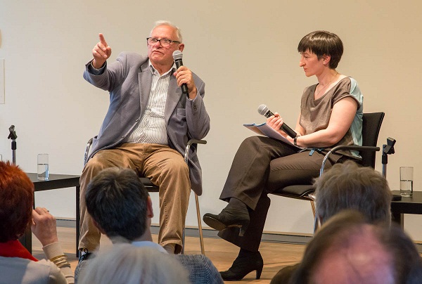 Nakon ova tri govornika mnogobrojna je miješana publika – pretežno Nijemci, nešto malo Hrvata i još nekih stranaca – uživala u kratkome i informativnom razgovoru što ga je s umjetnikom vodila kustosica Angela Jannelli.